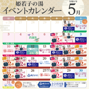 ◆26日は風呂の日・・・全会員ポイント2倍 アウフグース4回 女性サウナ10℃アップ オロポ100円OFF