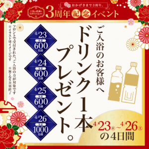 おかげ様で姫若子の湯は4月23日で周年を迎えます。
