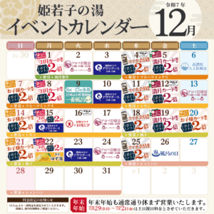 ◆26日は風呂の日・・・全会員ポイント2倍 アウフグース5回 女性アロマサウナ5回 オロポ100円OFF